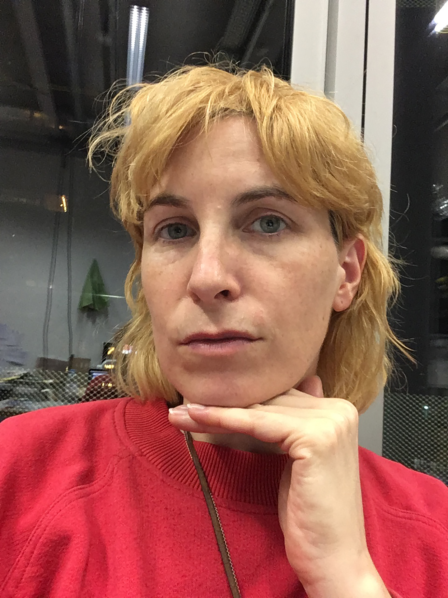 2019DETTO FATTO t-shirt, size M, color navy, lettering with my own bleached hair, sewn on, wire coat hanger, hand bent
